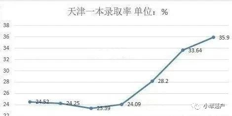 天津一本上线率从2013年的24.52%,攀升到2019年的35.9%;从字面的理解,即大约每3个天津考生中能有一个被一本院校录取。