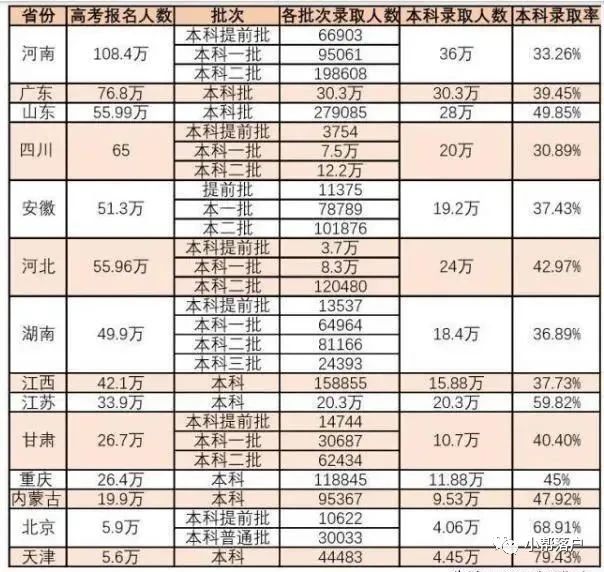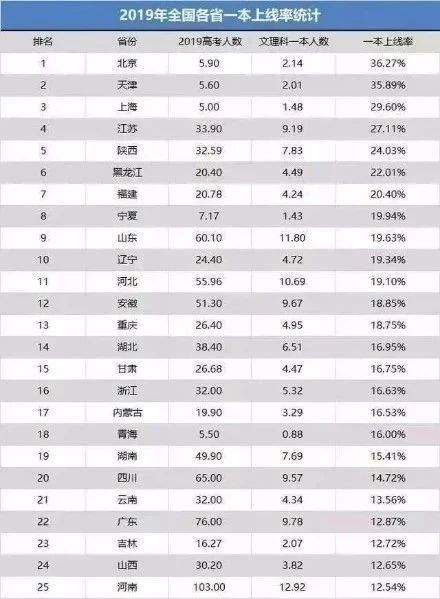 而同年,全国一本上线率最高的北京一本上线率为36.3%;天津紧随其后,上海为29.5%;这个比例比起全国平均数,已经相当高了。天津周边省山西、山东、河北等地,均未超过20%。